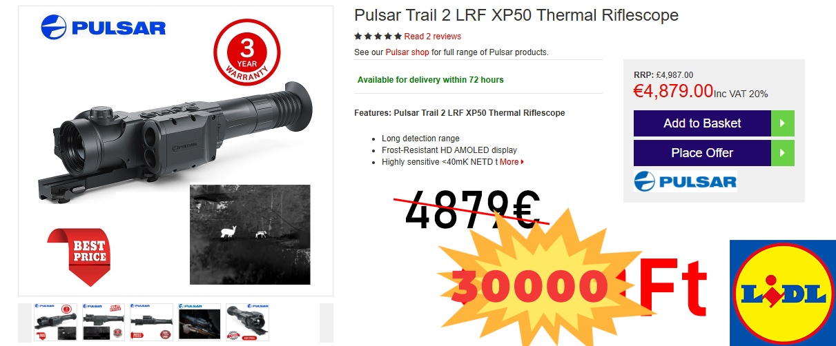 【Pulsar Trail 2 LRF XP50 hőkamerás puskatávcső】